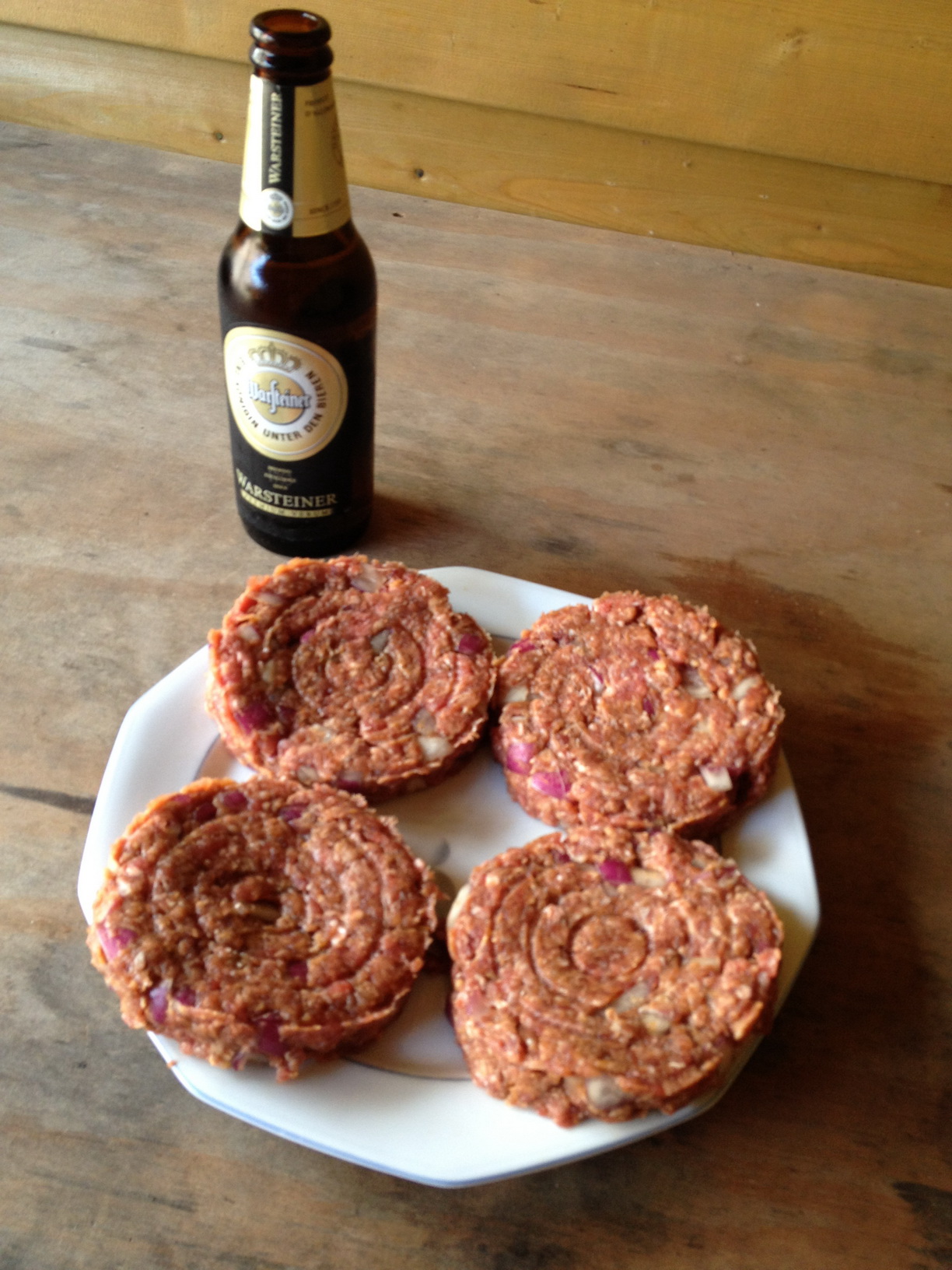 Voeg al deze ingrediënten bij elkaar en kneed het een aantal malen door. Vervolgens kun je hiervan 4 of 5 Spiffburgers maken, naar gelang hoe groot je deze wilt hebben. Zet deze vervolgens ongeveer 1 uur in de koelkast om wat op te stijven.