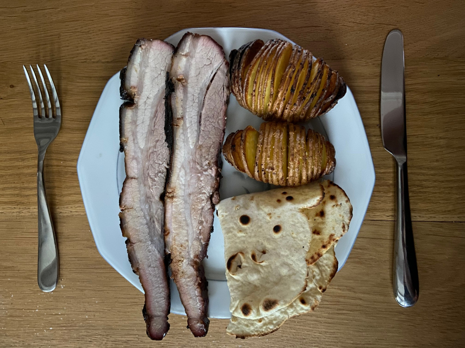 Hierna kun je genieten van een heerlijk bordje ‘Sticky Buikspek’. Wij hebben de ‘Sticky Buikspek’ gegeten met Hasselback aardappels en eigen gebakken flatbread. Het smaakte werkelijk heerlijk!