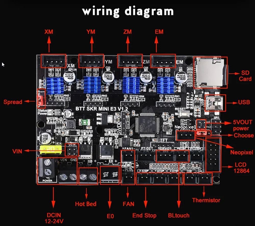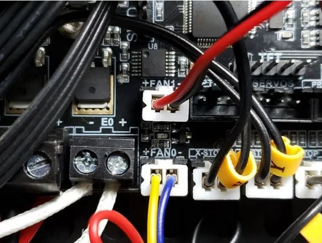 Na lezen op internet kwam ik er achter dat de aansluiting van FAN0 en FAN1 omgewisseld zijn t.o.v. van het originele Creality moederboard. Alle andere aansluitingen zijn 1:1 hetzelfde. Dit moet je dus nog omwisselen.