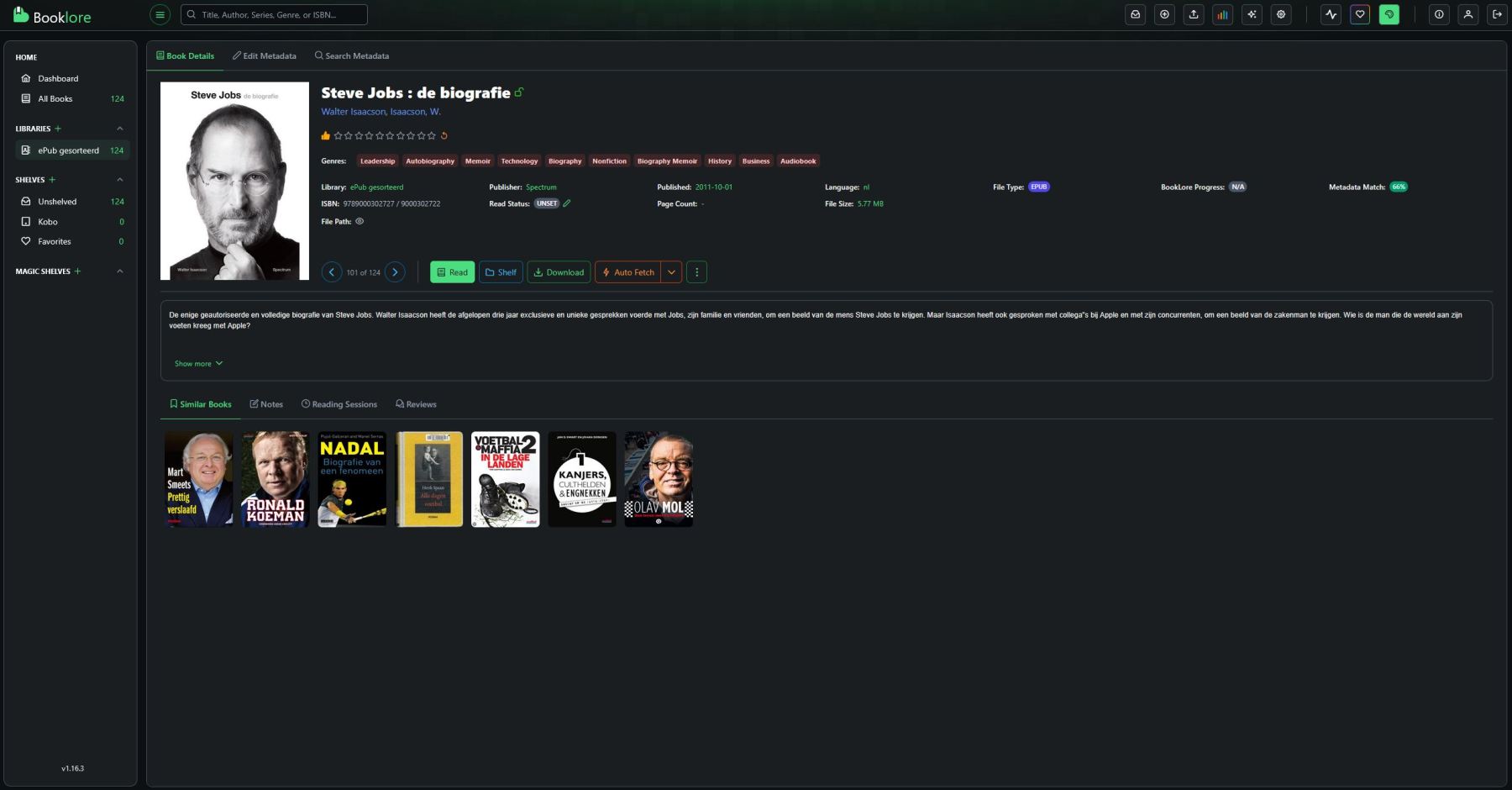 Ik was al heel lang op zoek naar goede software om mijn eBooks te beheren. De meeste sofware was het allemaal net niet (zoals Calibre, Kavita). Toen zag ik bij Tweakers de applicatie BookLore voorbij gekomen en heb deze eens geprobeerd. Over BookLore was ik meteen erg enthousiast. Het werkt erg mooi en intuïtief en is snel.