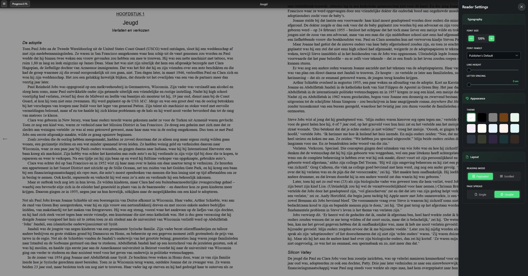 Natuurlijk kun je ook je eBooks online lezen en allerlei instellingen plegen hoe je deze te zien krijgt.