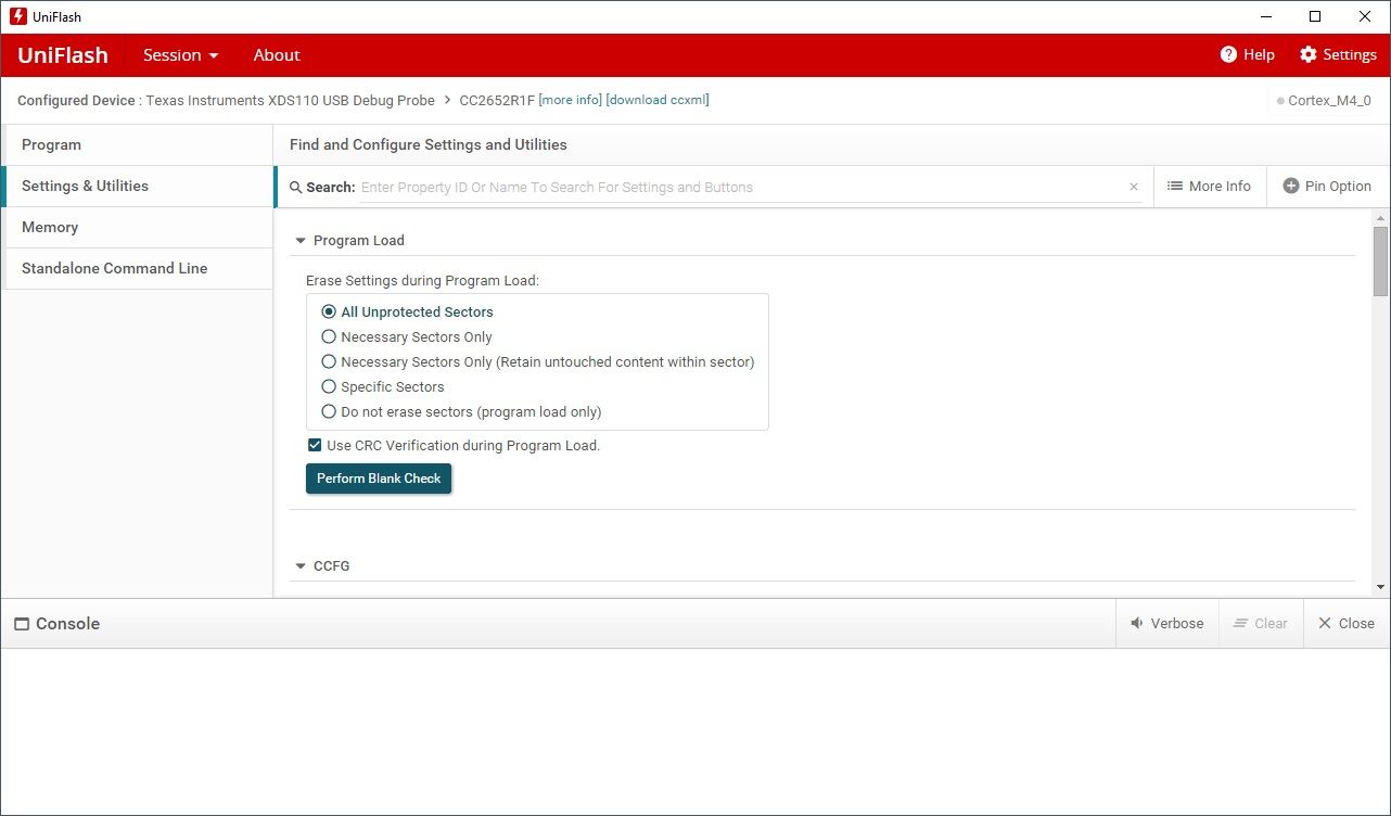 - Open de UniFlash Tool