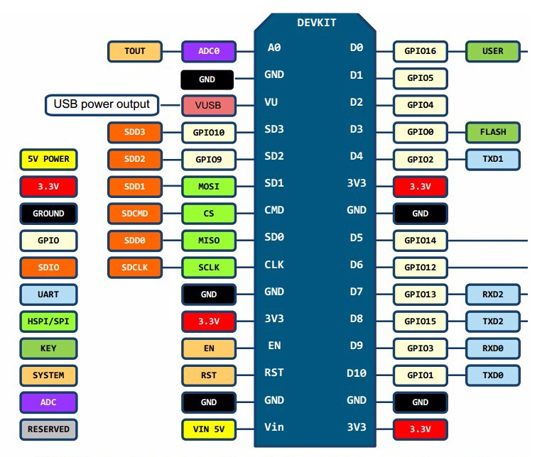 Het aansluiten is heel eenvoudig als je de pin-aansluitingen van je ESP8266 module weet: