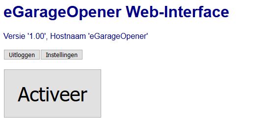 De standaard gebruikers-naam is ‘admin‘ en hier hoort standaard het wachtwoord ‘notdodo‘ bij. Deze gegevens kun je eventueel later in de Web-Interface van ‘eGarageOpener’ aanpassen bij [Instellingen]. Na het invullen van deze gegevens verschijnt de web-interface.