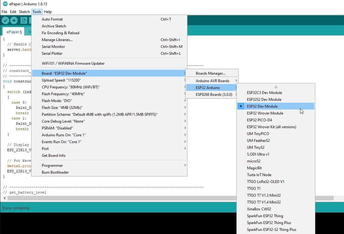 Nu alle voorbereidingen klaar waren ben ik hiermee verder aan de slag gegaan en heb uitgebreide software geschreven voor mijn ‘ePaper’ project. De software bestaat uit meer dan 3000 regels source-code en heeft een Web-Interface en API. Om de software op je ESP32 te krijgen moet je de volgende stappen doorlopen: