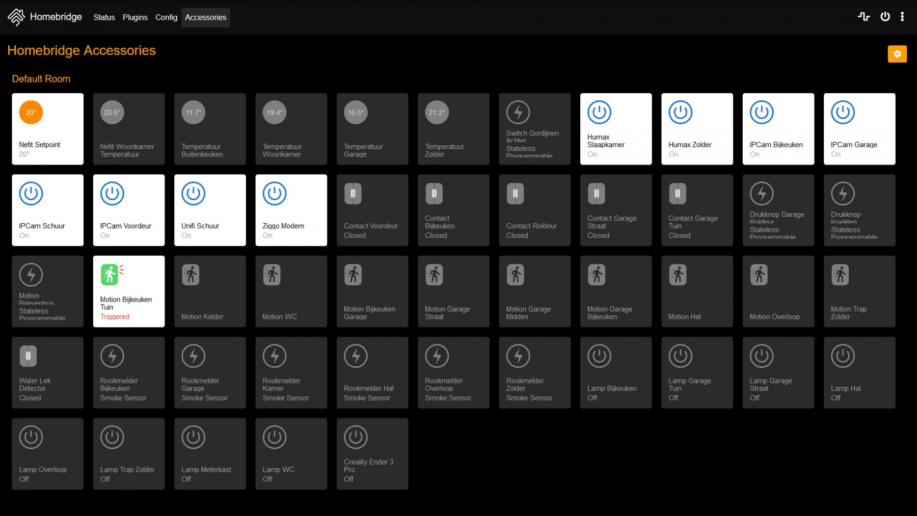 Je zult zien dat je apparaten van Domoticz nu automatisch worden toegevoegd aan Homebridge. Deze kun je vinden in het menu ‘Accessories’