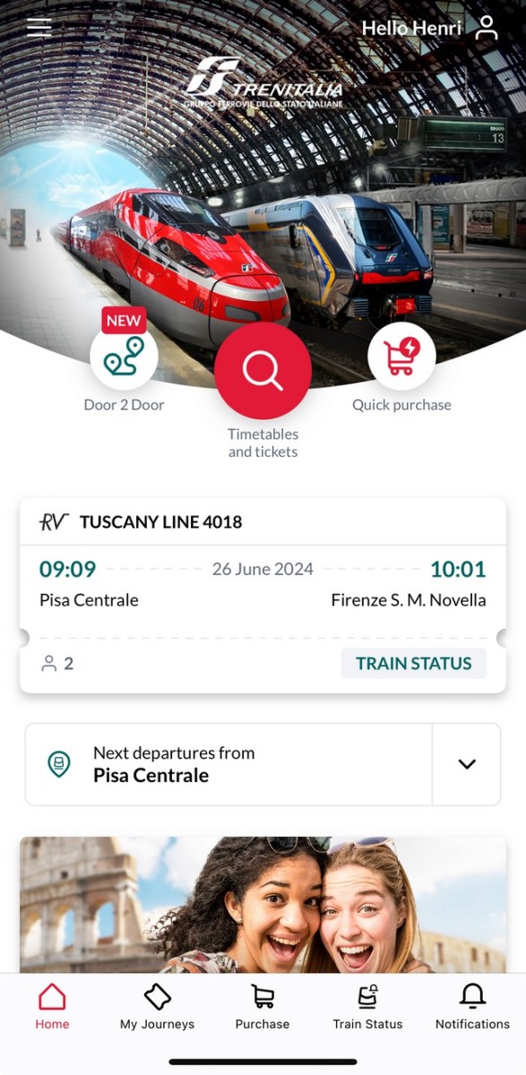 Vandaag gaan we met de trein naar Florence wat ongeveer 1 uur rijden is. De trein is in Italiƫ veel goedkoper dan in Nederland (lijkt factor 2-3 te schelen). Zo kost een enkeltje naar Florence Euro 9,30. De kaartjes kun je het handigste online kopen met de Trenitalia App op je smartphone.