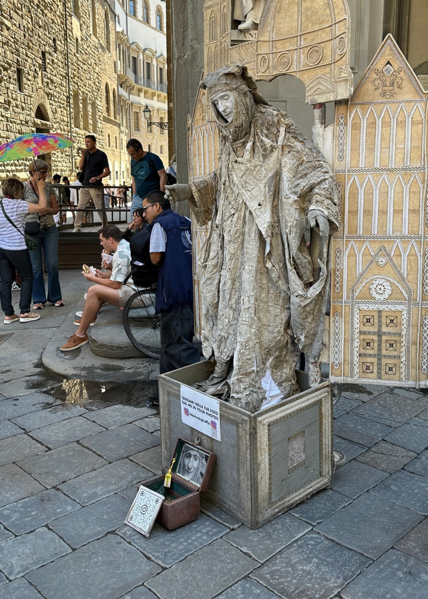 We lopen verder en gaan op weg naar de beroemde brug over de rivier de Arno, de Ponte Vecchio. Je vind hier veel juweliers, maar voor de rest is het niet veel bijzonders en het is hier veel te druk. Gelukkig valt er op de weg er naartoe genoeg te zien.