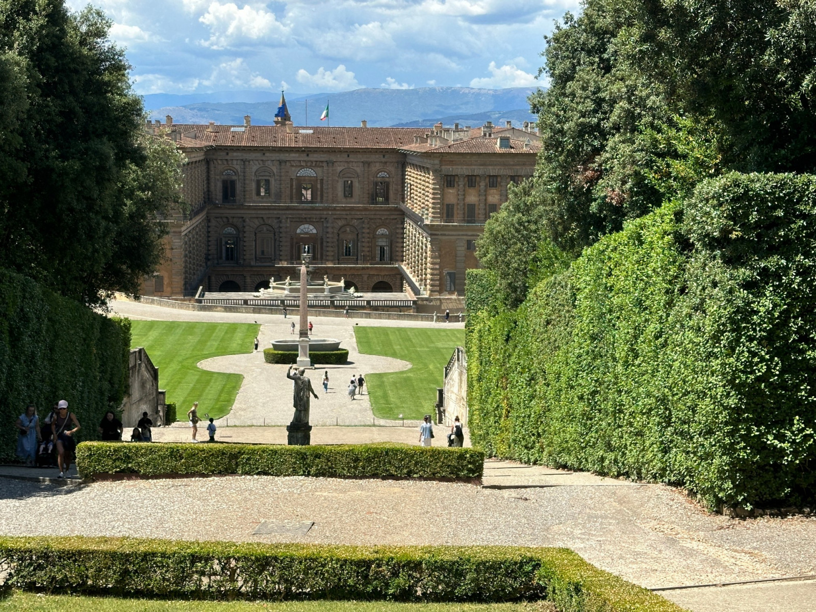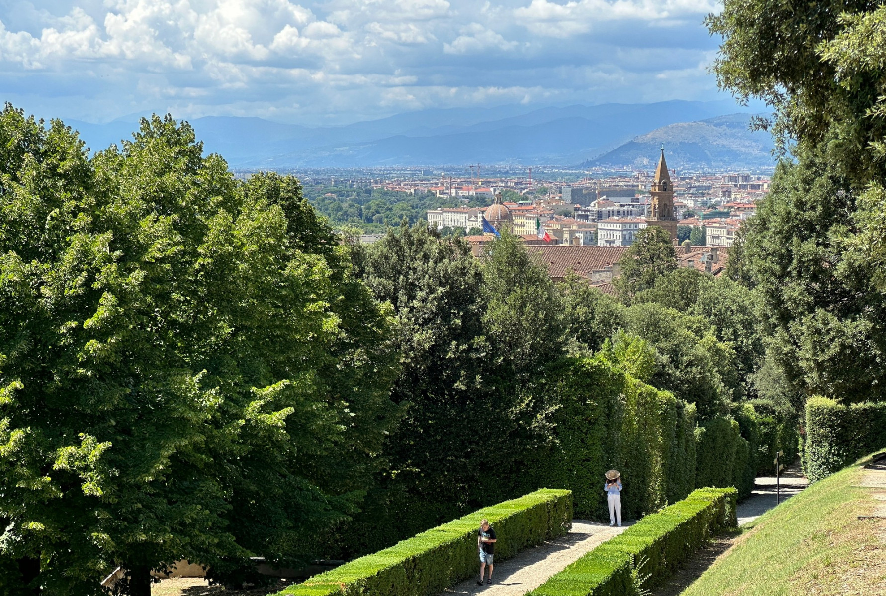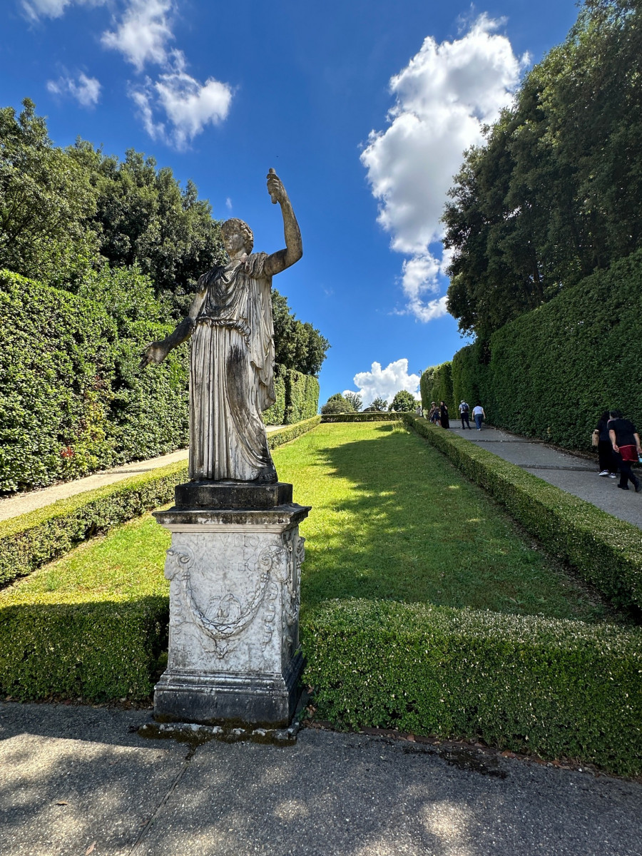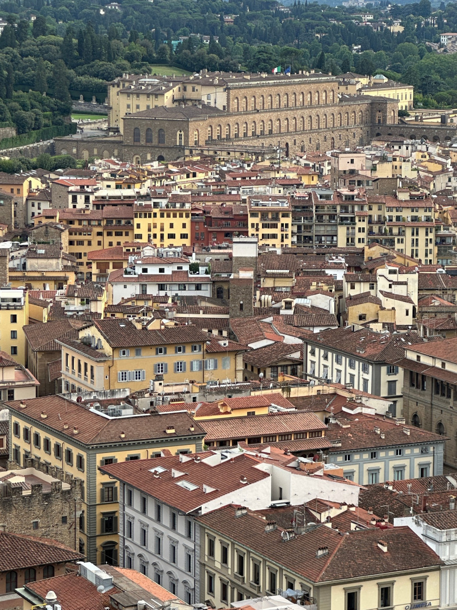 Na een hapje gegeten te hebben gaan we naar Palazzo Pitti en bezoeken de erbij horende Boboli tuinen. Dit is een steile klim, maar het uitzicht is dan erg mooi.