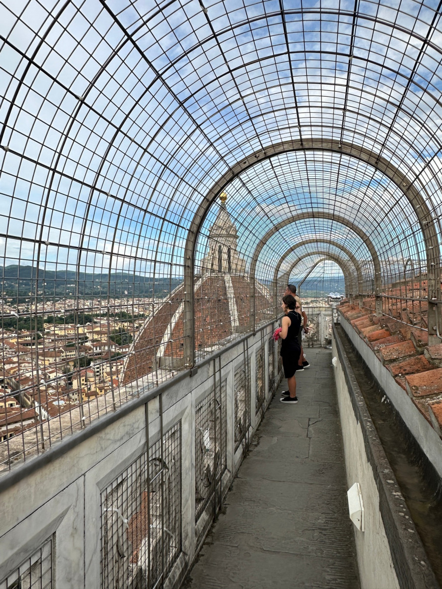 Rond 18:00 uur wil Henri nog de Campanile beklimmen met 412 treden voor een schitterend uitzicht over Florence. Je kunt het handigste het ticket met tijdslot reserveren via de smartphone App āTiqetsā. Doe dit wel tijdig, want ze zijn zo uitverkocht.