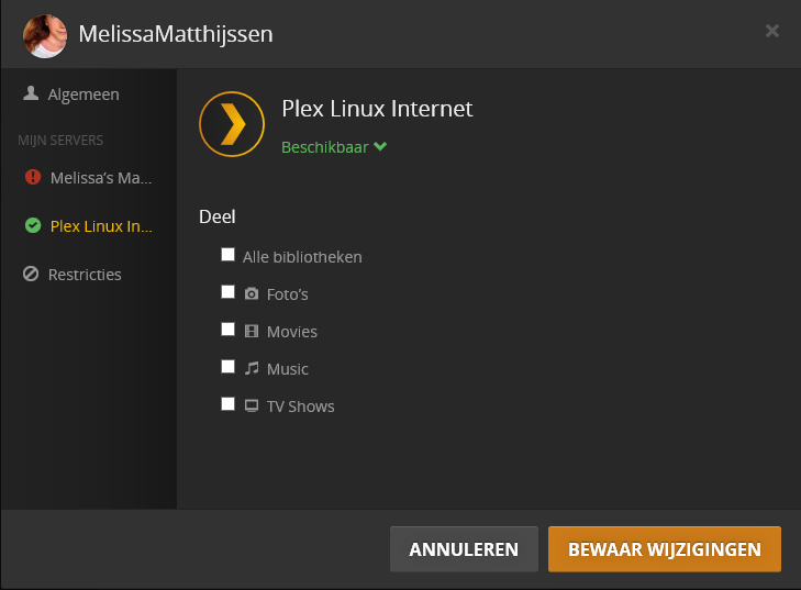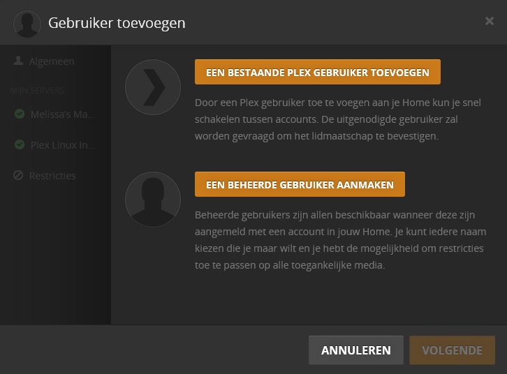Nadat je dit hebt gedaan kan de beheerder van de Plex Server deze gebruikers toevoegen aan zijn Plex Server bij instellingen.