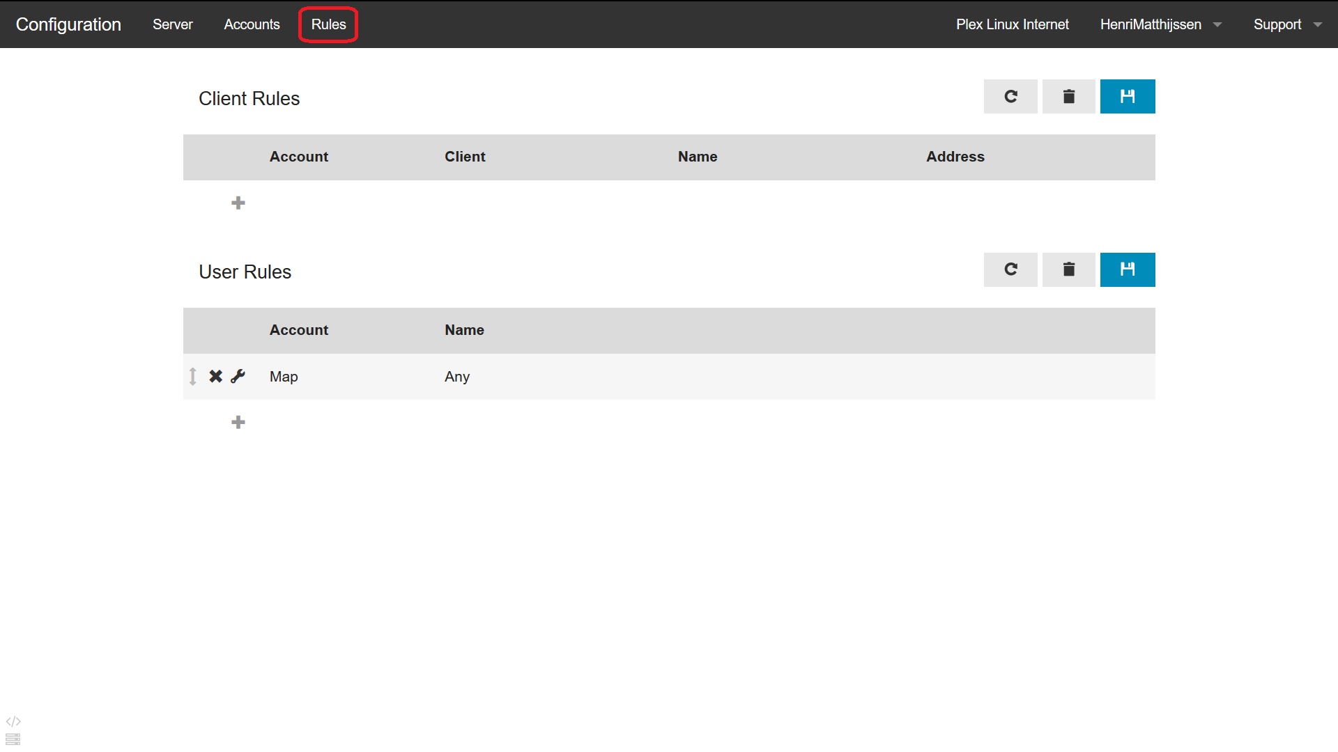 De allerlaatste stap is nu te zorgen dat de rules goed ingesteld staan in de web-configuratie. Neem onderstaande user rule over: