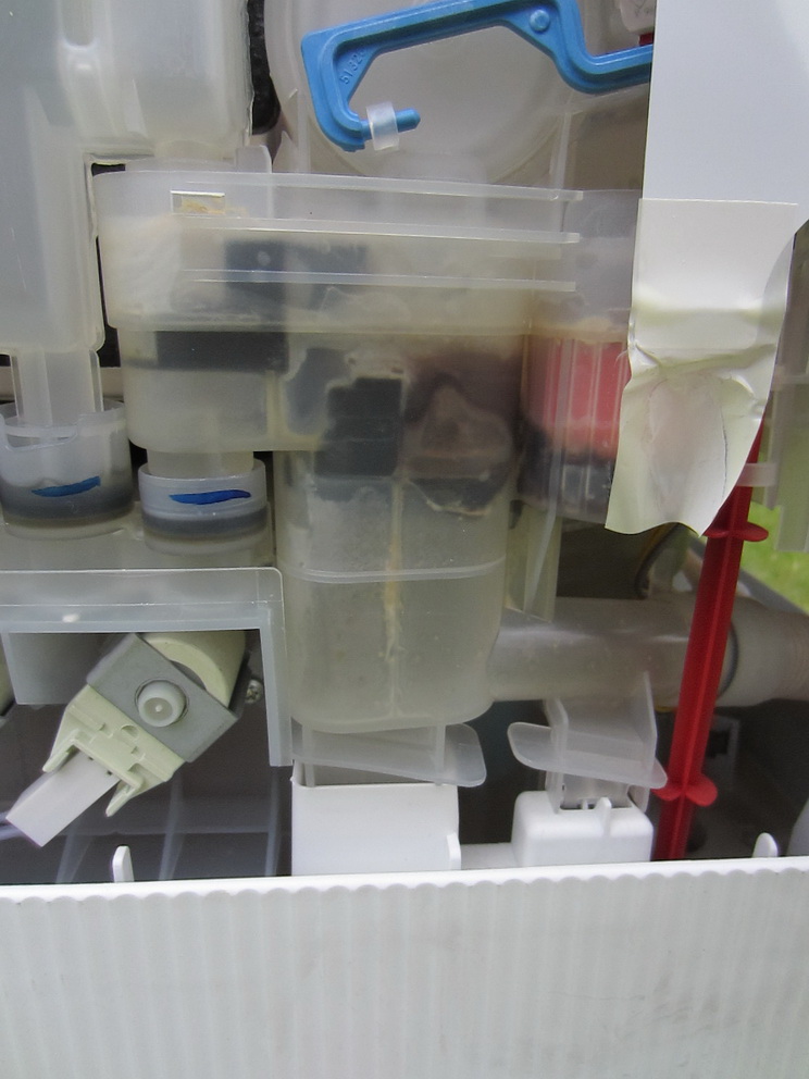 Deze blog enige weken al eens gelezen, vanwege ‘waterslag’ in identieke vaatwasser. Dit weekend maar eens aan de slag, maar was deze blog ‘kwijt’ Wel veel andere plaatjes en aanwijzingen op internet gevonden. Schoonmaken lukt inderdaad (bijna) allemaal. Ik ben een techneut dus wat open kan moet open. Het vlotterhuis lukt uiteindelijk met veel moeite en is nu brandschoon (in warme sodawater weken). Het ging echter mis bij het ontkoppelen van de watertoevoerslang (onderaan links, derde slang van links). De kunststof van deze slang is door de jaren wat verouderd en dus minder soepel. Iets te hard aan lopen sjorren en krak, kunststof aansluittuutje afgebroken. Dat kost dus 130 euries….voor een nieuw waterhouder/labyrinth.