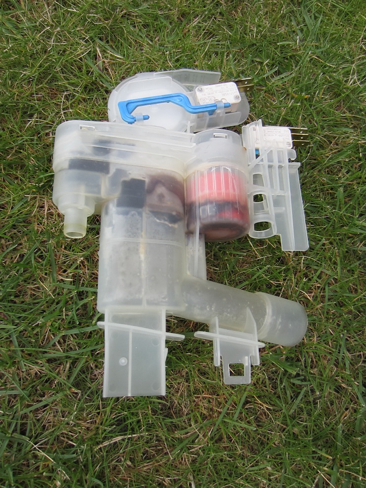 Ik denk achteraf dat het keren van de machine tijdens de eerste reparatie mijn probleem tijdelijk verholpen had. En dat na 2 keer wassen het vuil weer op zijn plek zat en de vlotter omhoog duwde.
