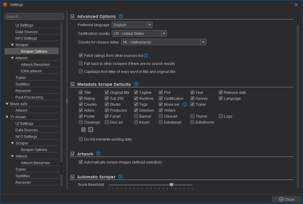 In de meeste gevallen kunnen Plex en Kodi alle extra informatie wel vinden, maar soms niet en dan kun je de ‘scrapers’ helpen met zogenaamde NFO files en extra plaatjes. Deze NFO bevat dan al de informatie voor de ‘scrapers’ om de goede informatie op te halen. Je kunt zo’n NFO file natuurlijk handmatig invullen, maar veel eenvoudiger kan dit met de tool tinyMediaManager.