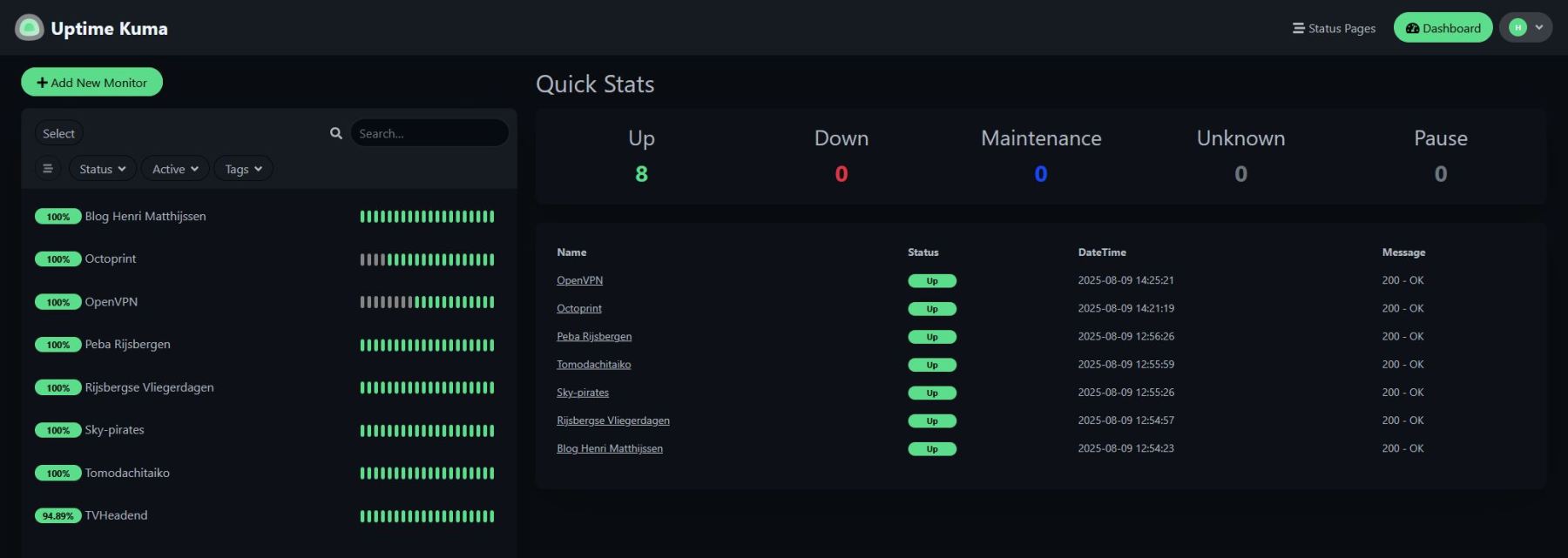Uptime Kuma is een erg fijne tool en het is een fijne gedachte om meteen op de hoogte gebracht te worden als er iets in je netwerk down gaat.