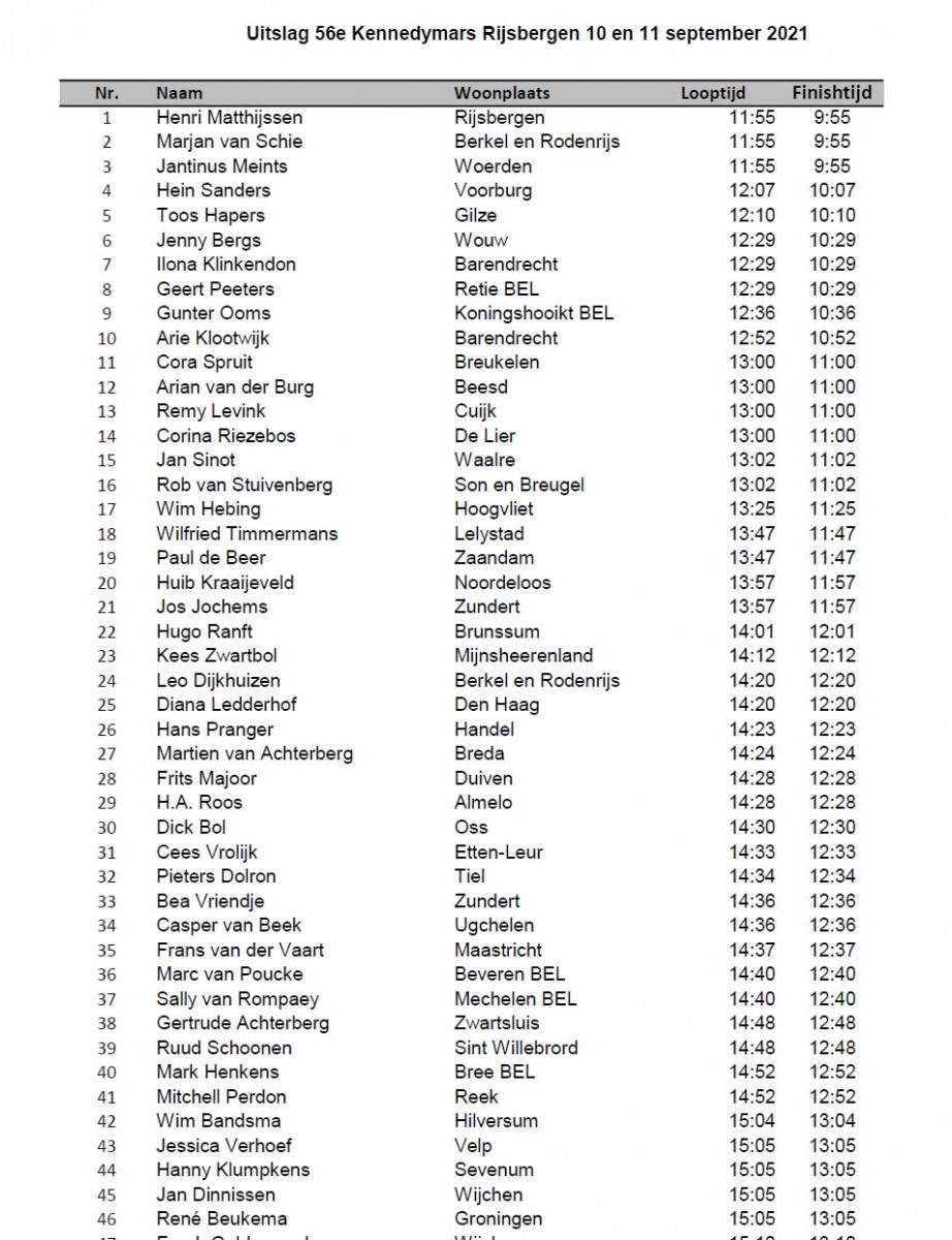 Ik kan in ieder geval weer een item van mijn bucket-lijst afstrepen en dat is om eens in mijn leven een keer als eerste te eindigen bij de Kennedymars in Rijsbergen.