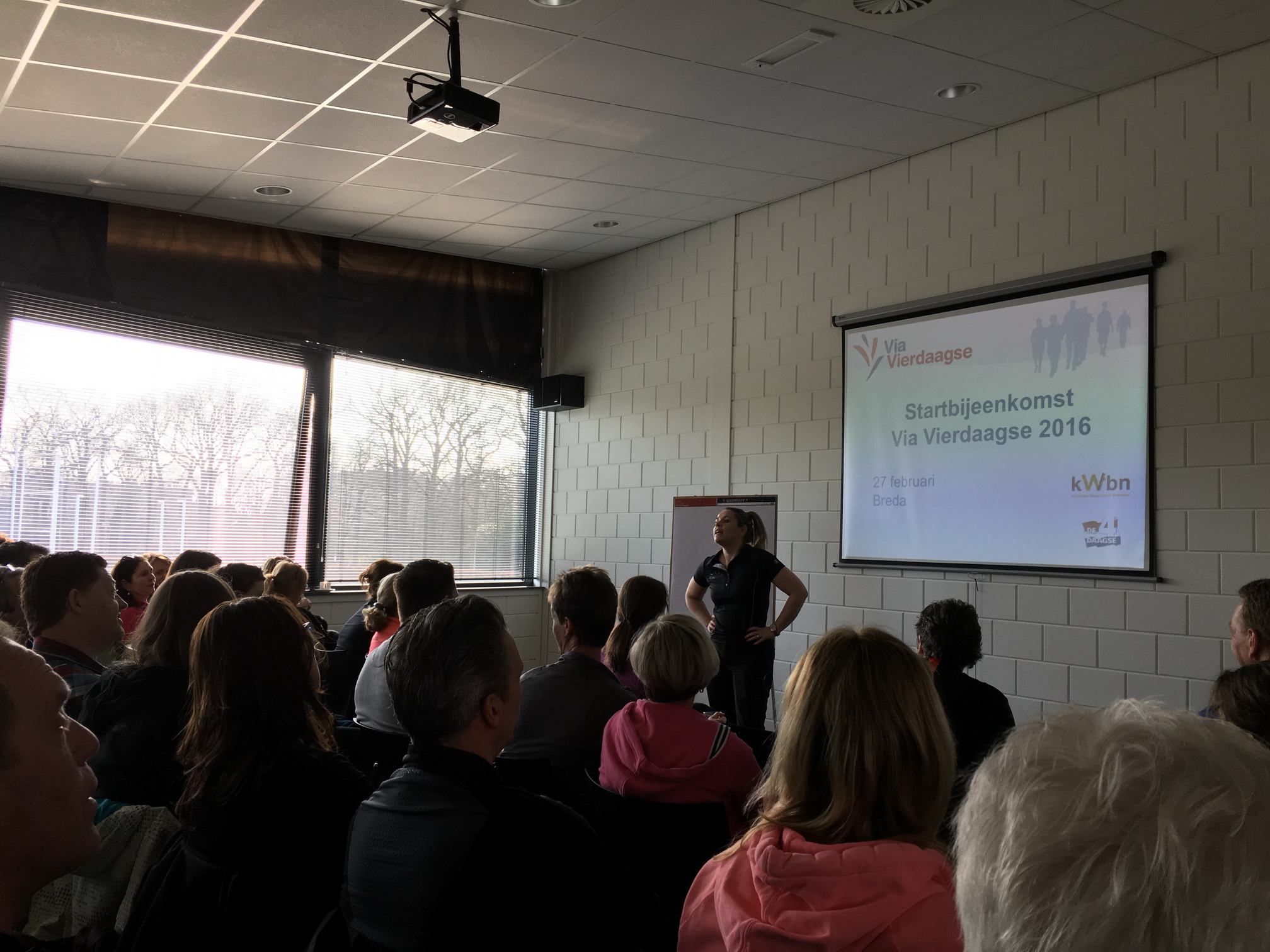 In het eerste gedeelte van deze startersbijeenkomst werd wat algemene informatie gegeven. Ik heb hier niet echt veel nieuws gehoord, daar je de meeste informatie ook op de site van Vierdaagse Nijmegen en Via Vierdaagse kunt vinden. Er was maar 1 persoon aanwezig die de Vierdaagse van Nijmegen al meerder keren had gelopen en hier heb ik eigenlijk de meeste en beste tips van gehoord.