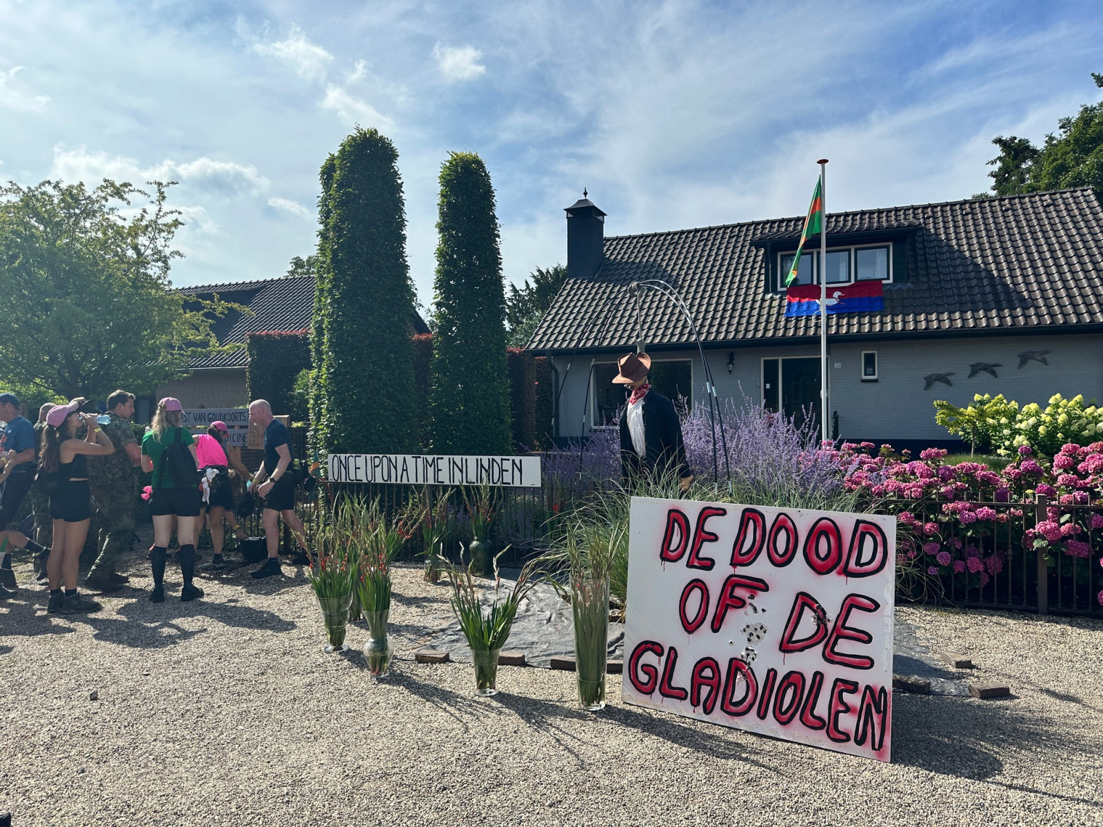 Erg leuk was ook dat buurvrouw Jacqueline heel lief een boeketje kwam brengen vanwege het uitlopen van de tocht!